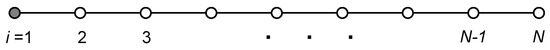 First, we examine the case of one-dimensional propagation of infection, which allows for a relatively simple analytical solution. This is very much analogous to the one-dimensional interpretation used in the original Ising model. Only one connected graph is possible in one dimension that connects the nodes that is as shown in Figure 1. The initial conditions are specified by