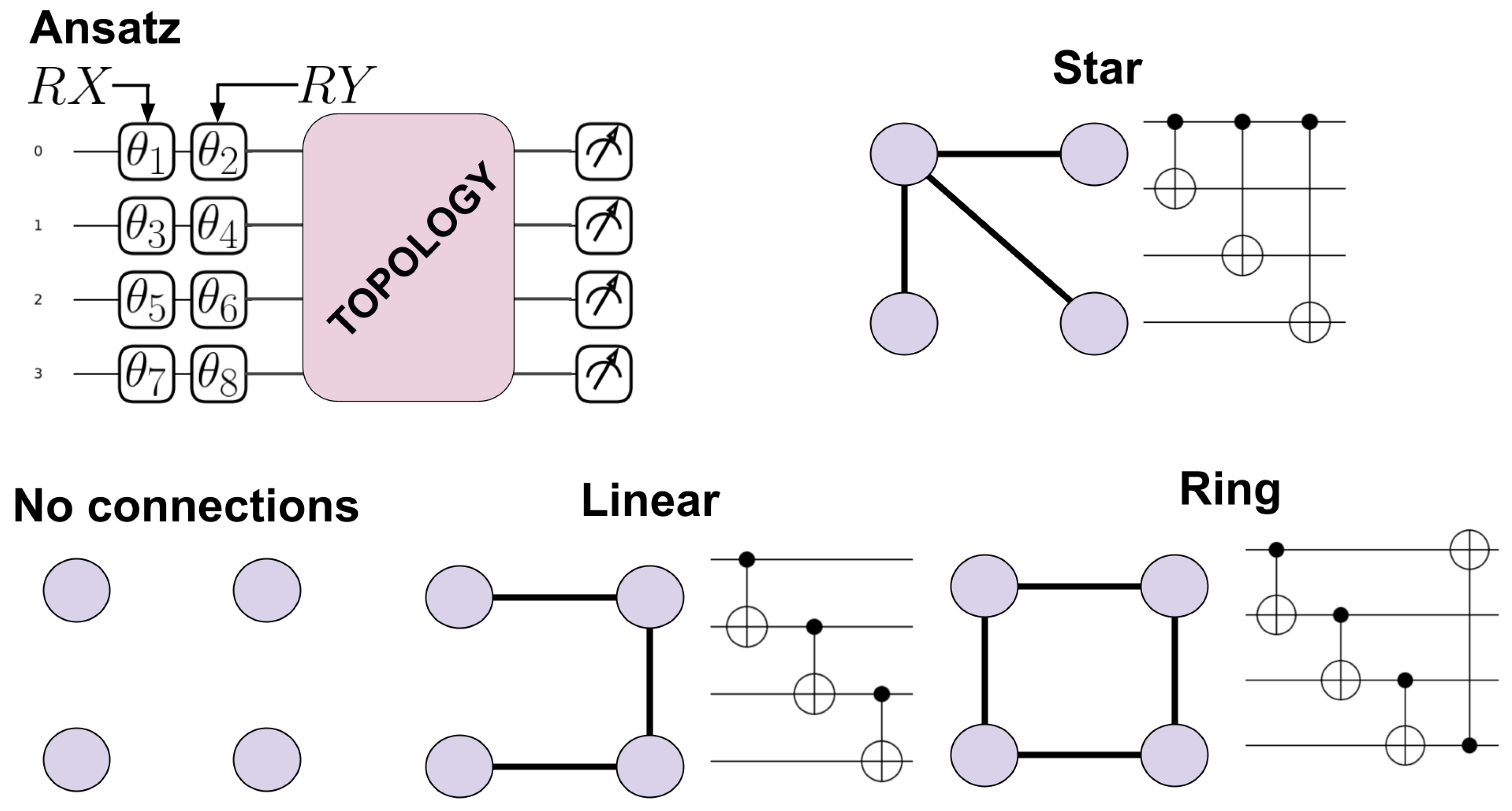 - Cheng, J.; Wang, H.; Liang, Z.; Shi, Y.; Han, S.; Qian, X. TopGen: Topology-Aware Bottom-Up Generator for Variational Quantum Circuits. arXiv 2022, arXiv:2210.08190. [Google Scholar] [CrossRef]