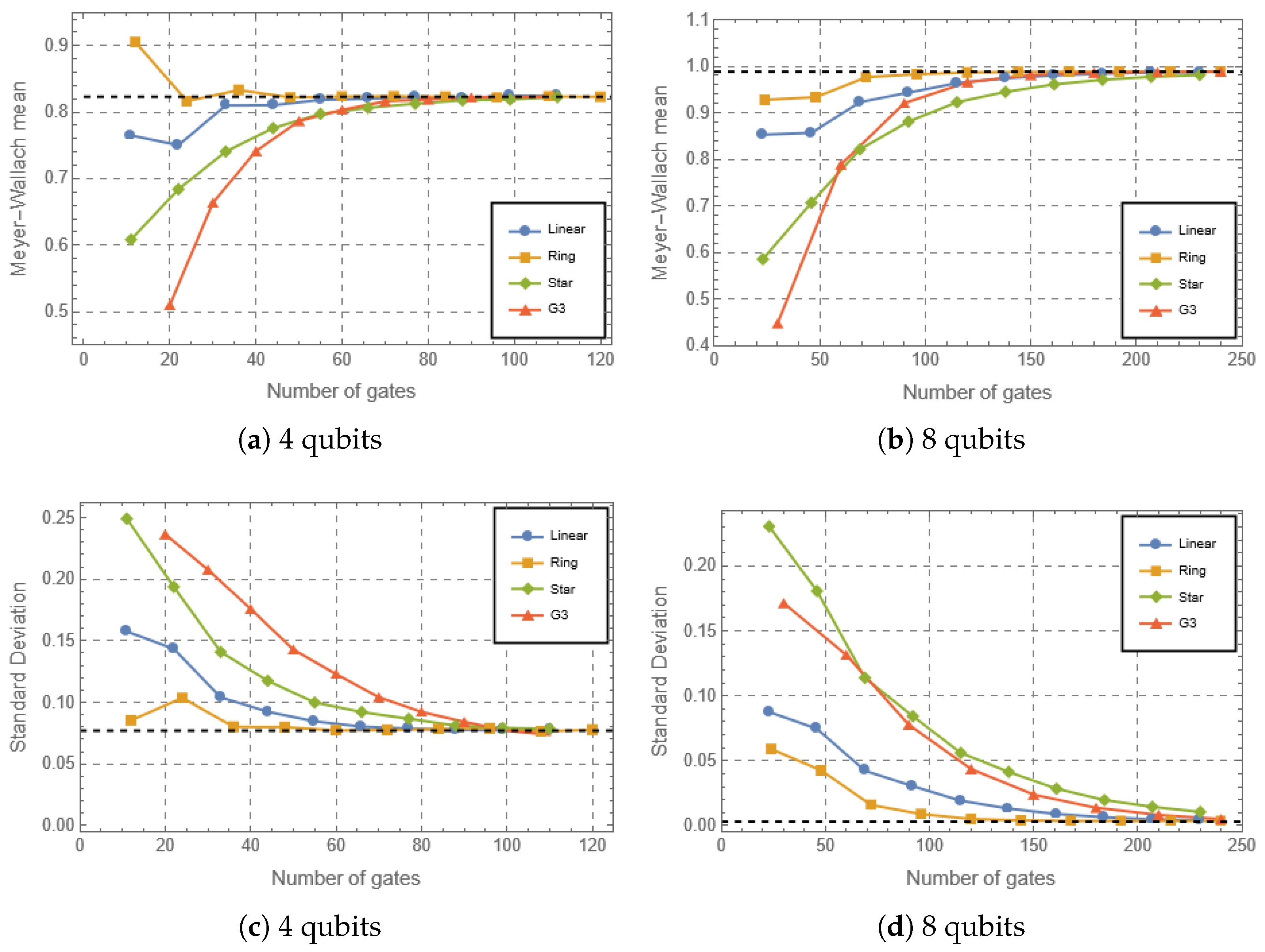 - Ilário Correr, G.; Medina, I.; Azado, P.C.; Drinko, A.; Soares-Pinto, D.O. Characterizing randomness in parameterized quantum circuits through expressibility and average entanglement. Quantum Sci. Technol. 2024, 10, 015008. [Google Scholar] [CrossRef]