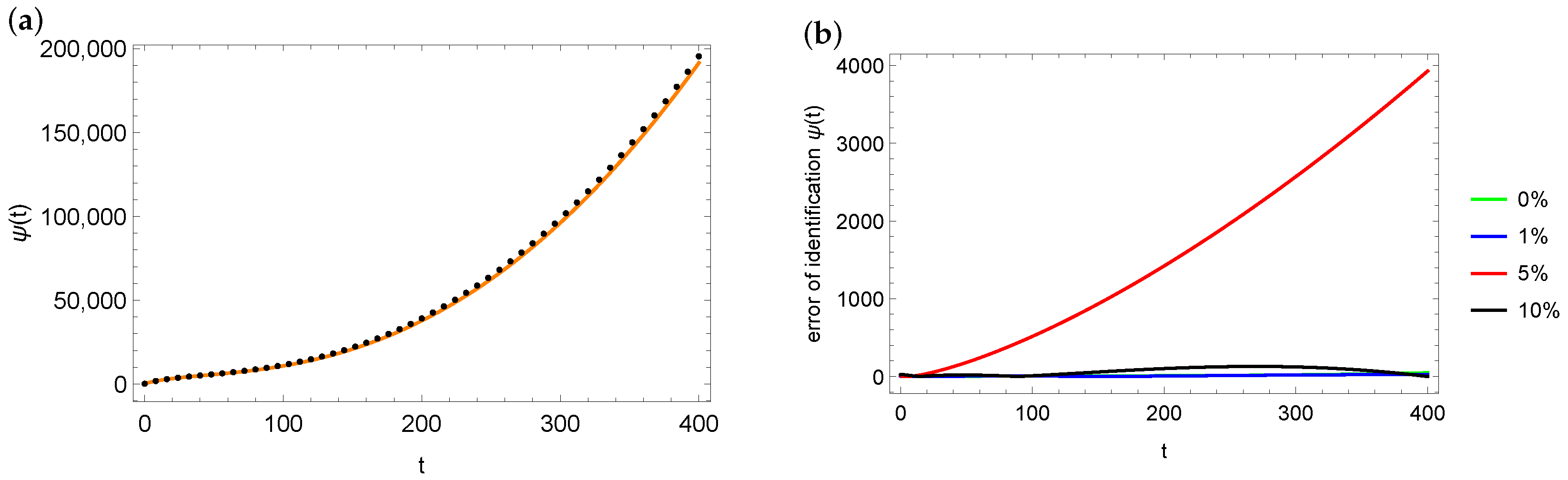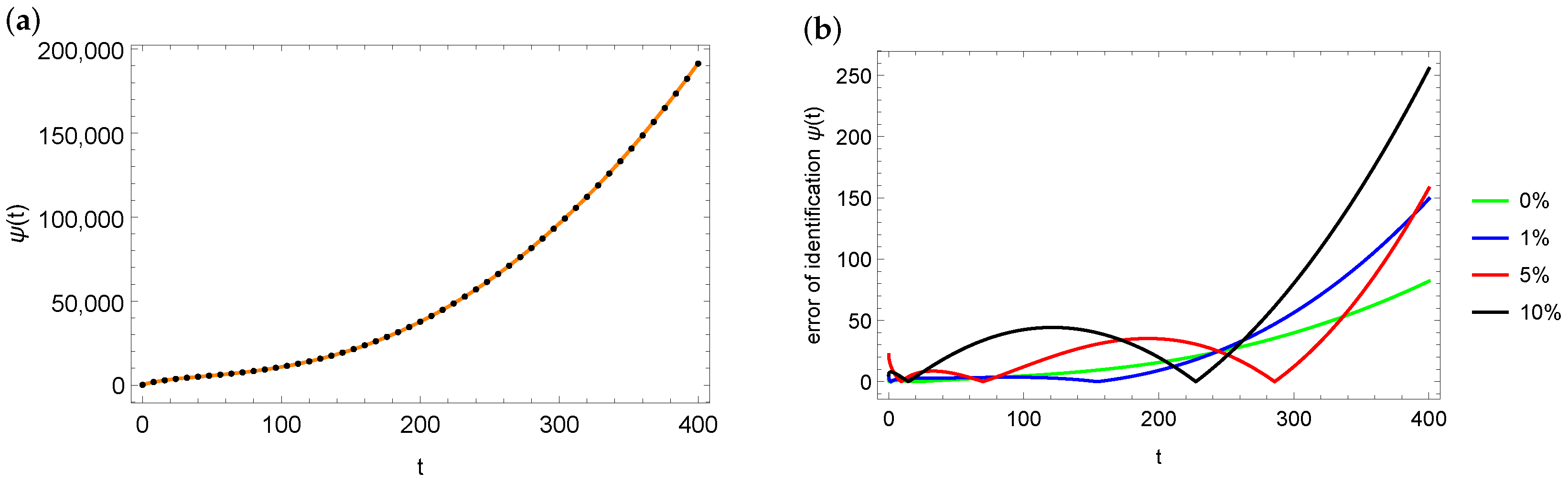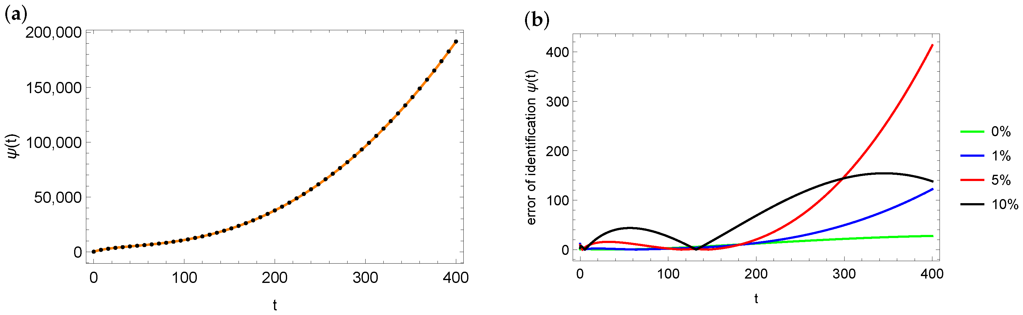 function (marked with the orange solid line) and the identified value of the
