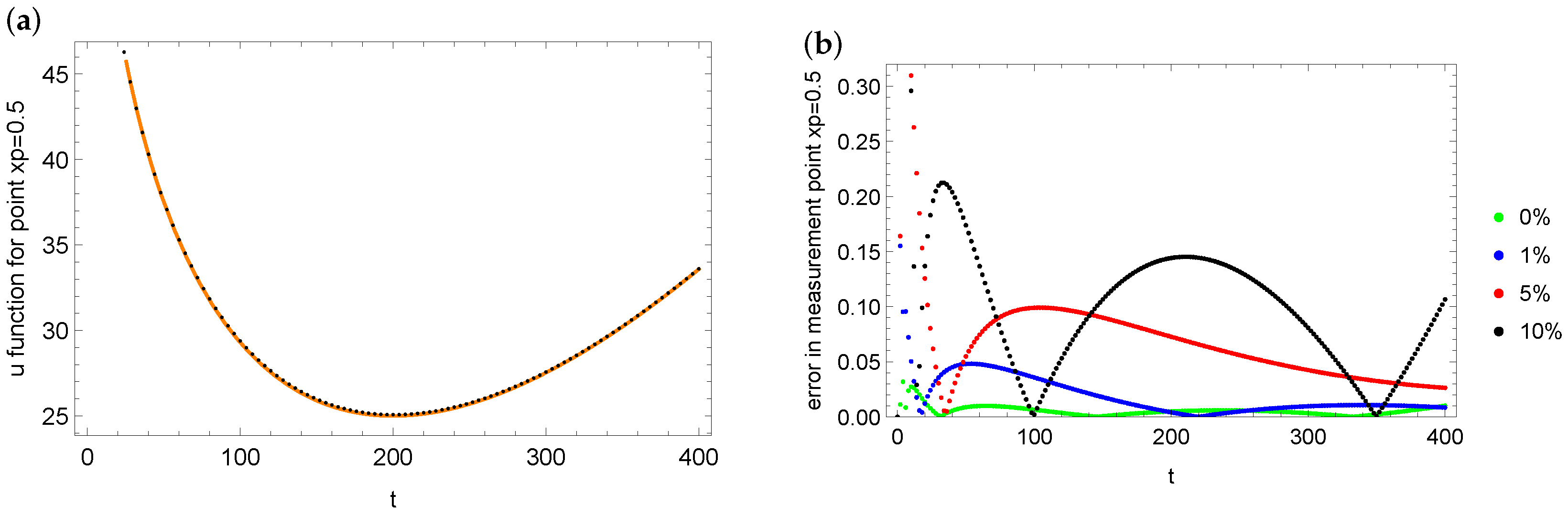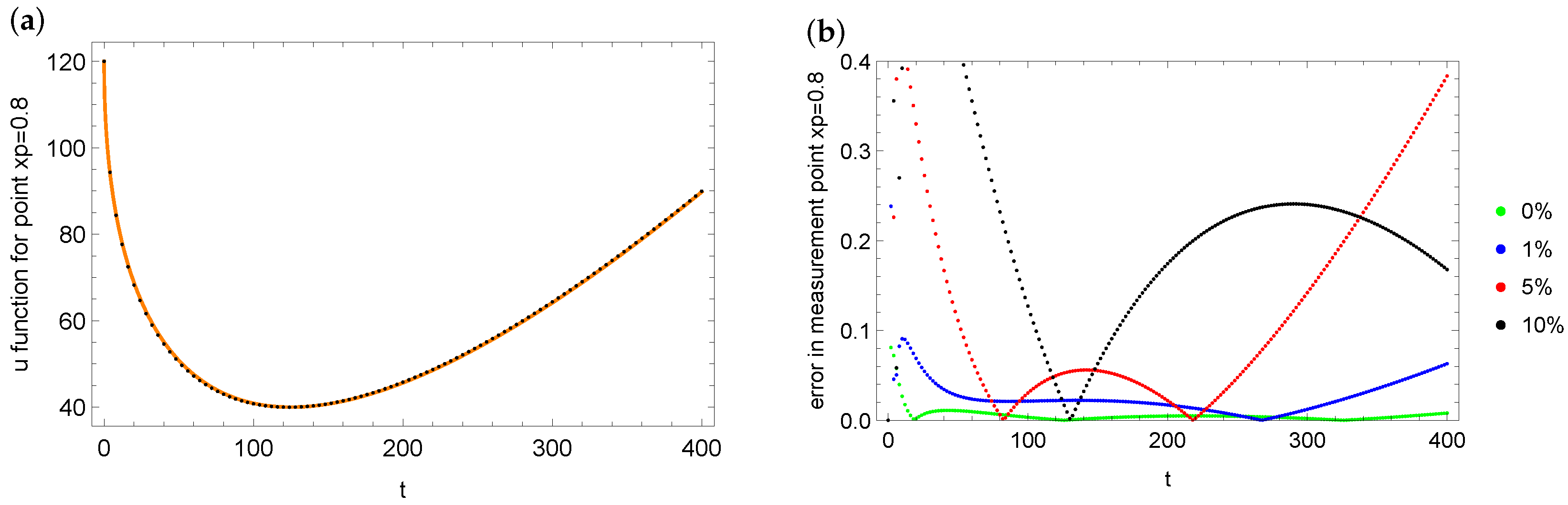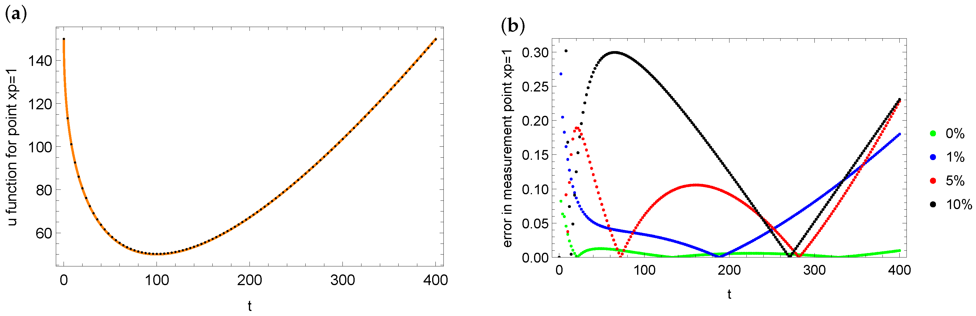 u for various measurement data with different levels (b). It can be seen that the largest errors of fit with the measurement data in the case of the point