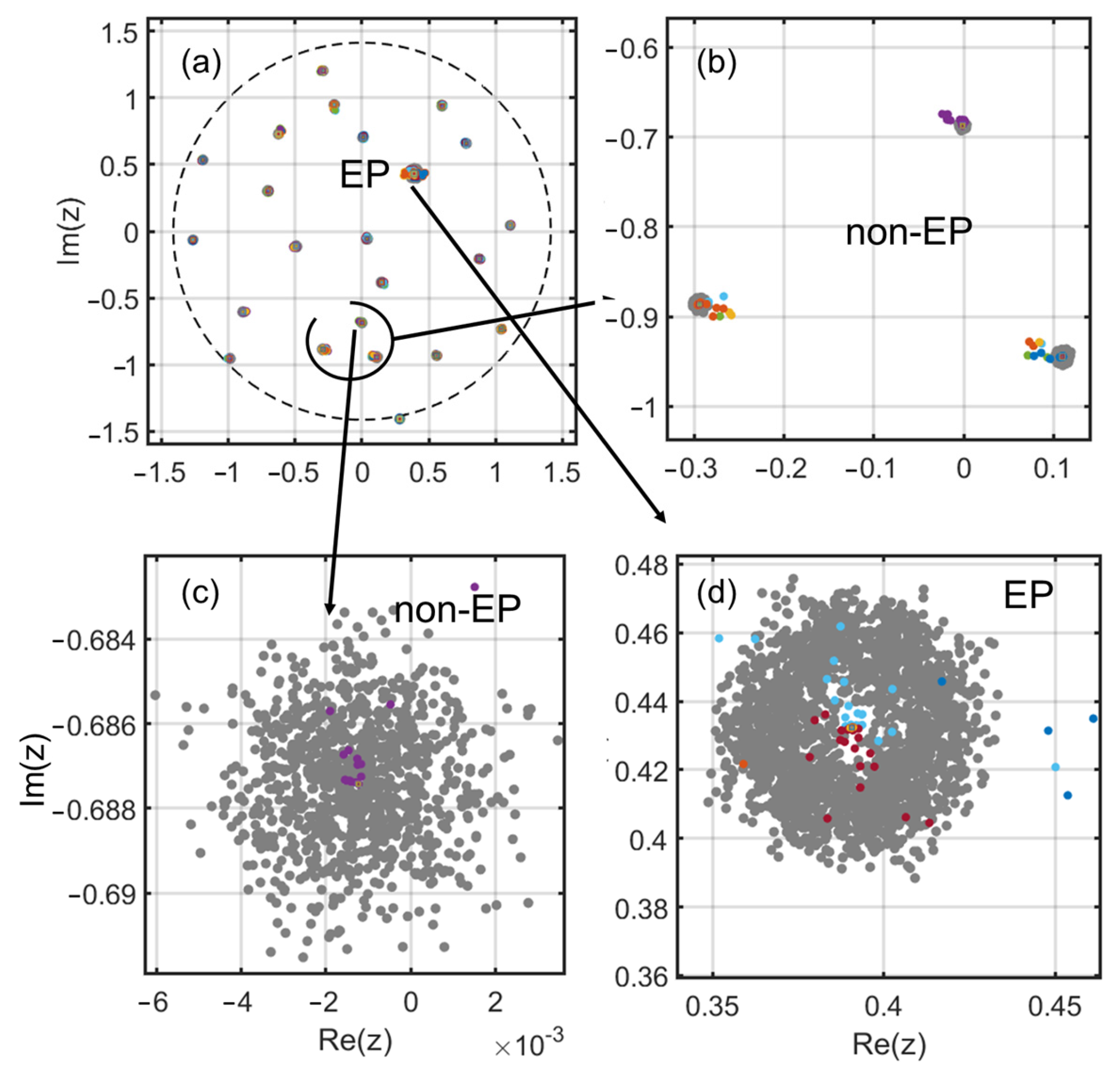 Note that the dimension of EPs is an important aspect. Here we deal with “EP2”, where two eigenvalues and eigenvectors coincide, but higher-order EPs, so-called “EP
