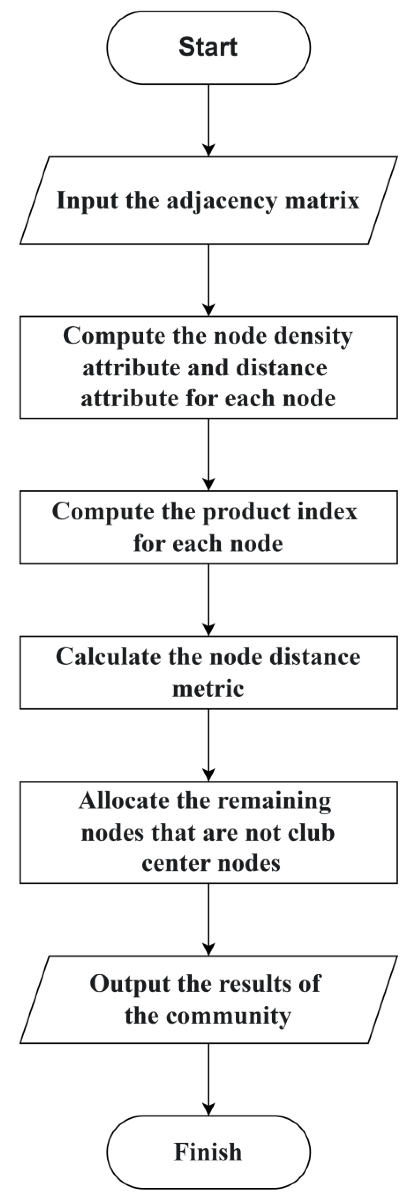 Step 4: Calculate the distance between each node and the center of each community, and assign the node to the center of the community with the closest distance;