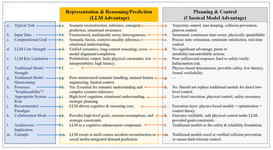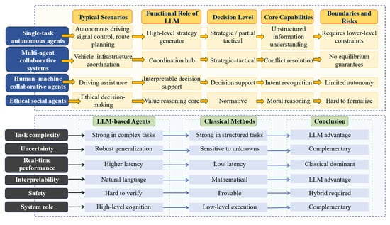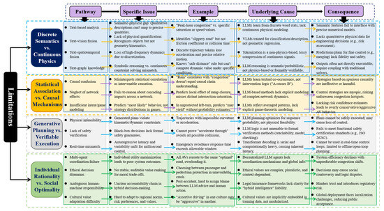 It is important to emphasize that the proposed four-level integration perspective is not intended solely as a literature organization tool, but as an analytical framework for exposing differences in information coupling and system autonomy that are obscured by scenario-based classifications. Studies categorized under the same application label (for example, “autonomous driving”) may differ fundamentally in how LLMs are integrated. In some cases, LLMs are confined to auxiliary semantic roles such as annotation or rule interpretation, while in others they directly participate in planning or decision generation. Although these systems appear similar at the application level, they exhibit radically different risk profiles, uncertainty propagation mechanisms, and failure modes. Scenario-oriented taxonomies tend to obscure these distinctions, making it difficult to analyze capability boundaries and structural limitations. By contrast, the proposed integration levels explicitly reflect the depth of information coupling between LLMs and physical system dynamics, enabling a clearer assessment of when LLMs enhance system performance and when they introduce irreducible risk.