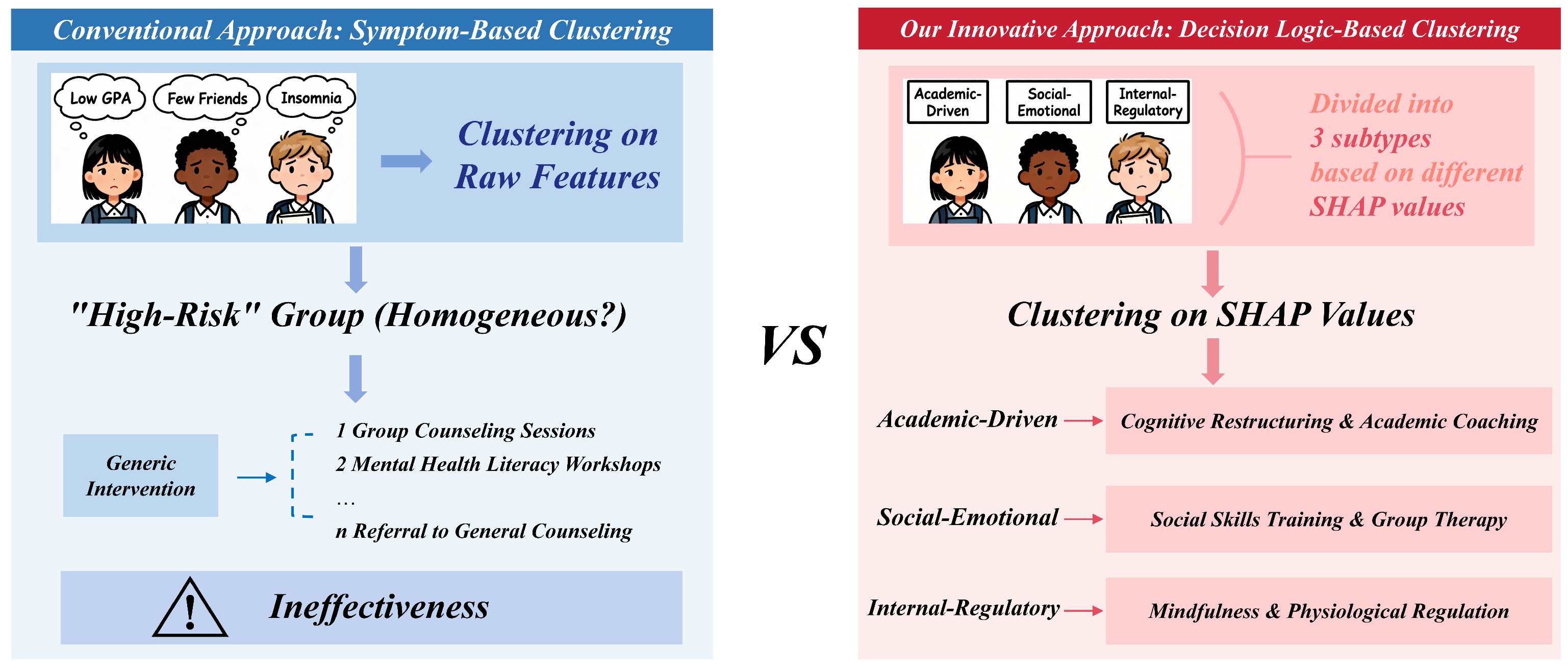 Chicago/Turabian StyleLiu, Penglin, Ji Tang, Hongxiao Wang, and Dingsen Zhang. 2026. "Mapping Heterogeneity in Psychological Risk Among University Students Using Explainable Machine Learning" Entropy 28, no. 2: 224. https://doi.org/10.3390/e28020224