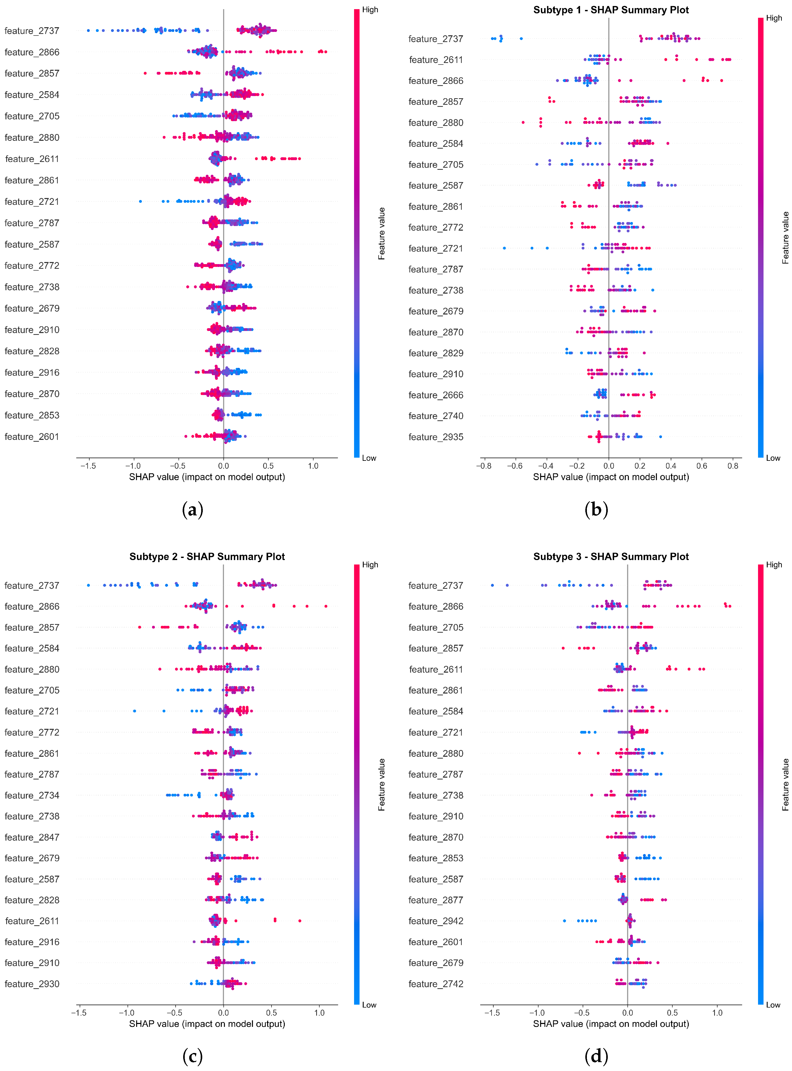 - Subtype 1 (Academic-Driven): Primary drivers included academic achievement stressors, such as “Exams” (feature_260, MI = 0.2399).