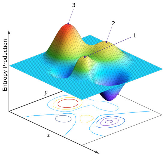 - The potentiality of various distinct sets of these internal forces and flows for non-linear systems for the same initial and boundary conditions (i.e., multiple, locally stable, dissipative structures or processes, at stationary states)—each set of which can have a different rate of dissipation of the applied external potential (entropy production).