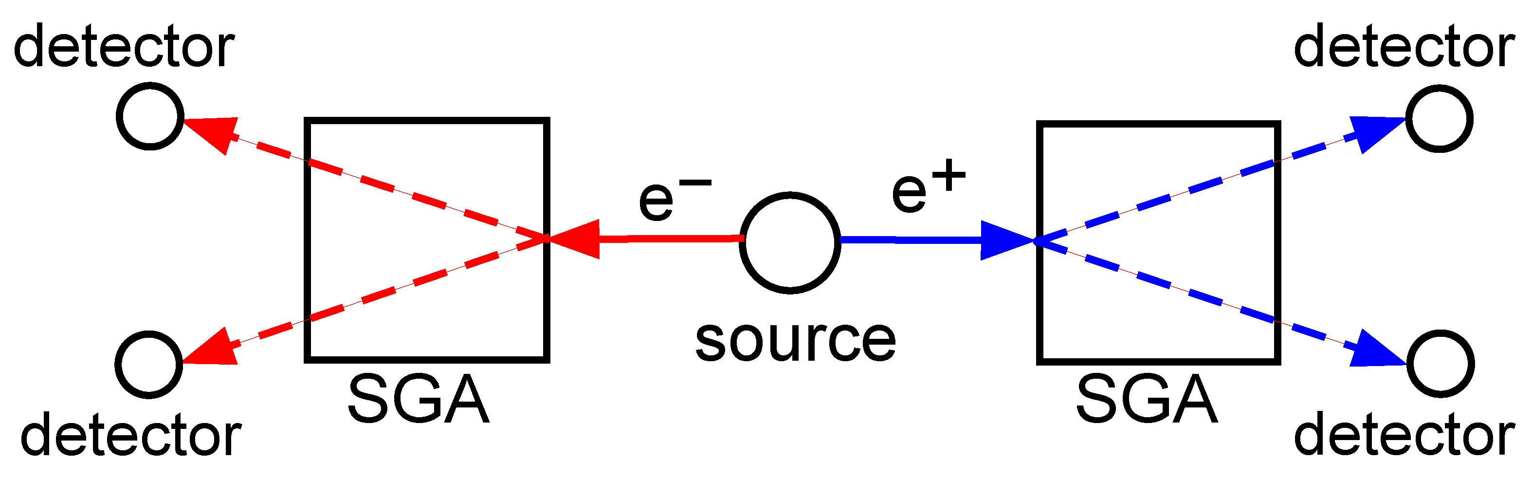 where the red arrows refer to the electron, the blue arrows refer to the positron, and the spatial wavefunction is suppressed for clarity. The total quantum state is simply the tensor product of Equations (1) and (3). There are no subscripts specifying axes because this is a rotationally invariant wavefunction. When the two SGA’s