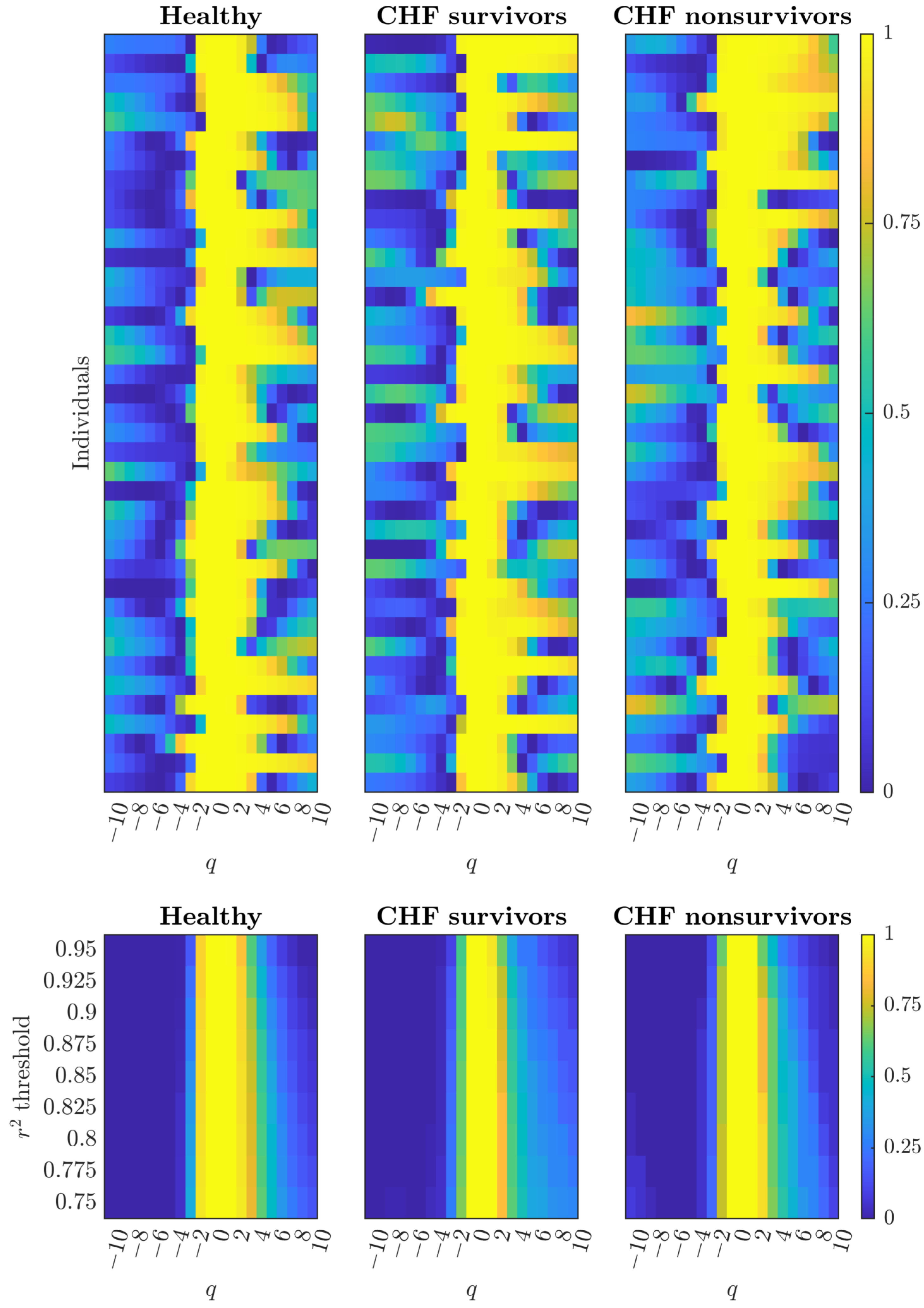 profiles with high reliability across both weak fluctuations (parasympathetic fine-tuning) and strong fluctuations (sympathetic bursts). We examine whether heart failure alters threshold sensitivity patterns or preserves additomultiplicative organization despite pathological changes.