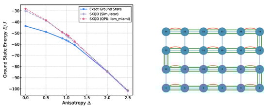 - Yoshioka, N.; Amico, M.; Kirby, W.; Jurcevic, P.; Dutt, A.; Fuller, B.; Garion, S.; Haas, H.; Hamamura, I.; Ivrii, A.; et al. Krylov diagonalization of large many-body Hamiltonians on a quantum processor. Nat. Commun. 2025, 16, 5014. [Google Scholar] [CrossRef] [PubMed]