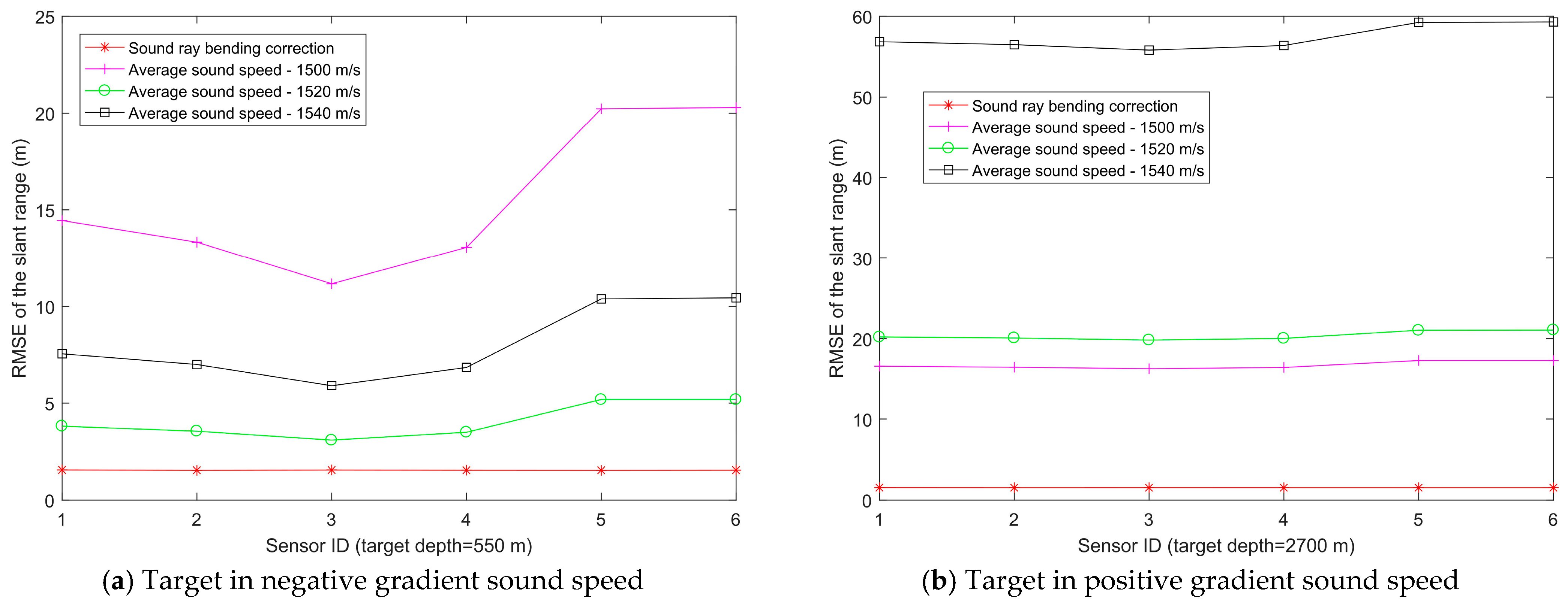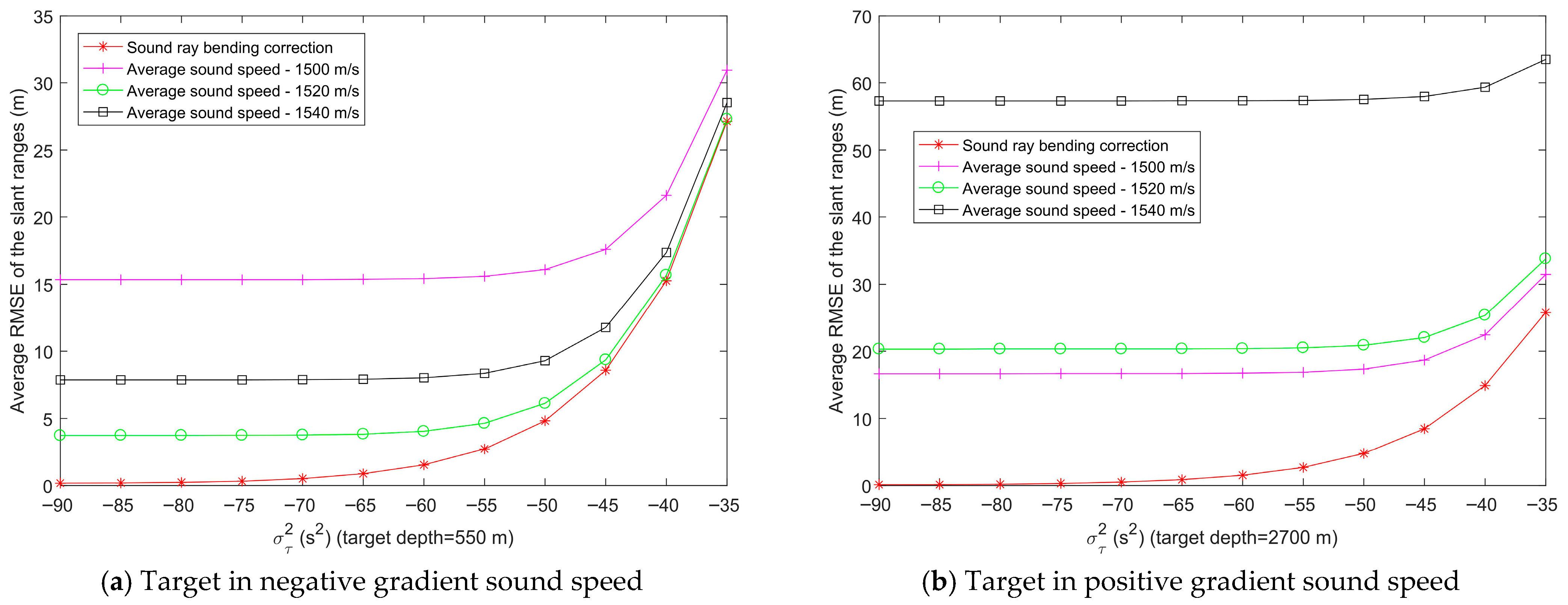 6.1. Simulation Experiment of Slant Range Estimation Based on Sound Ray Bending Correction