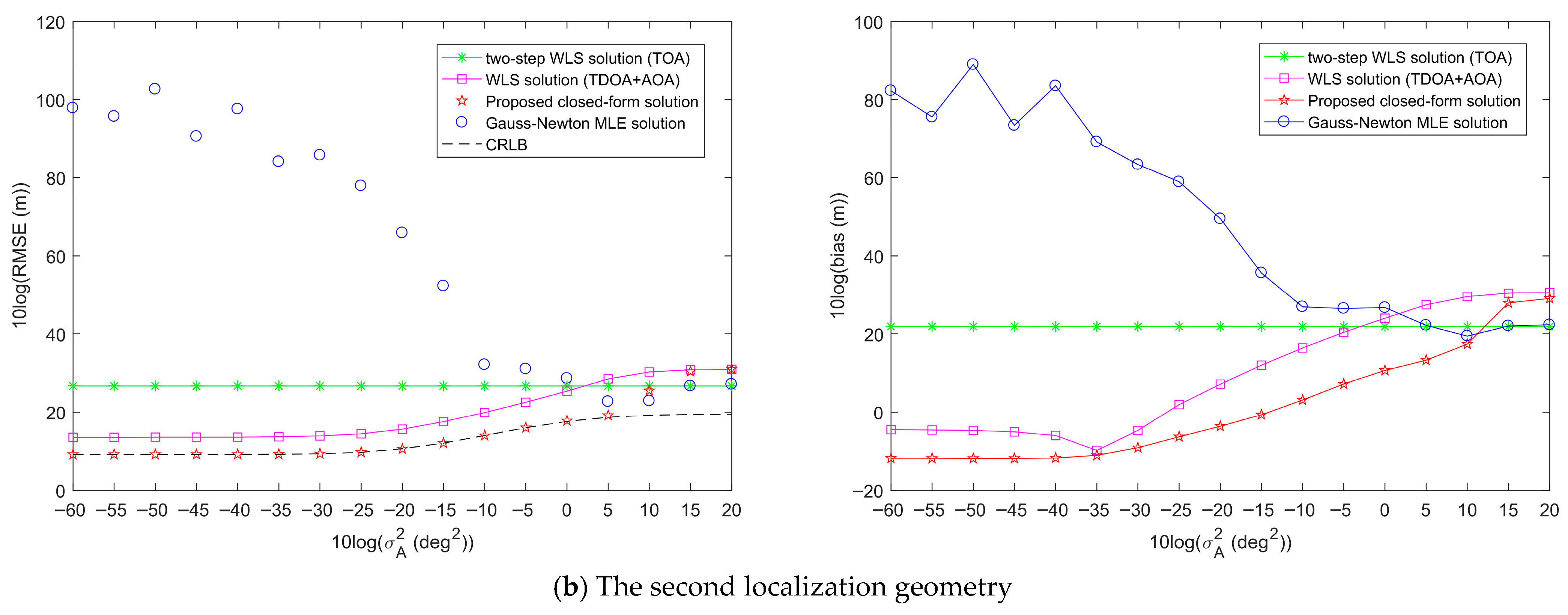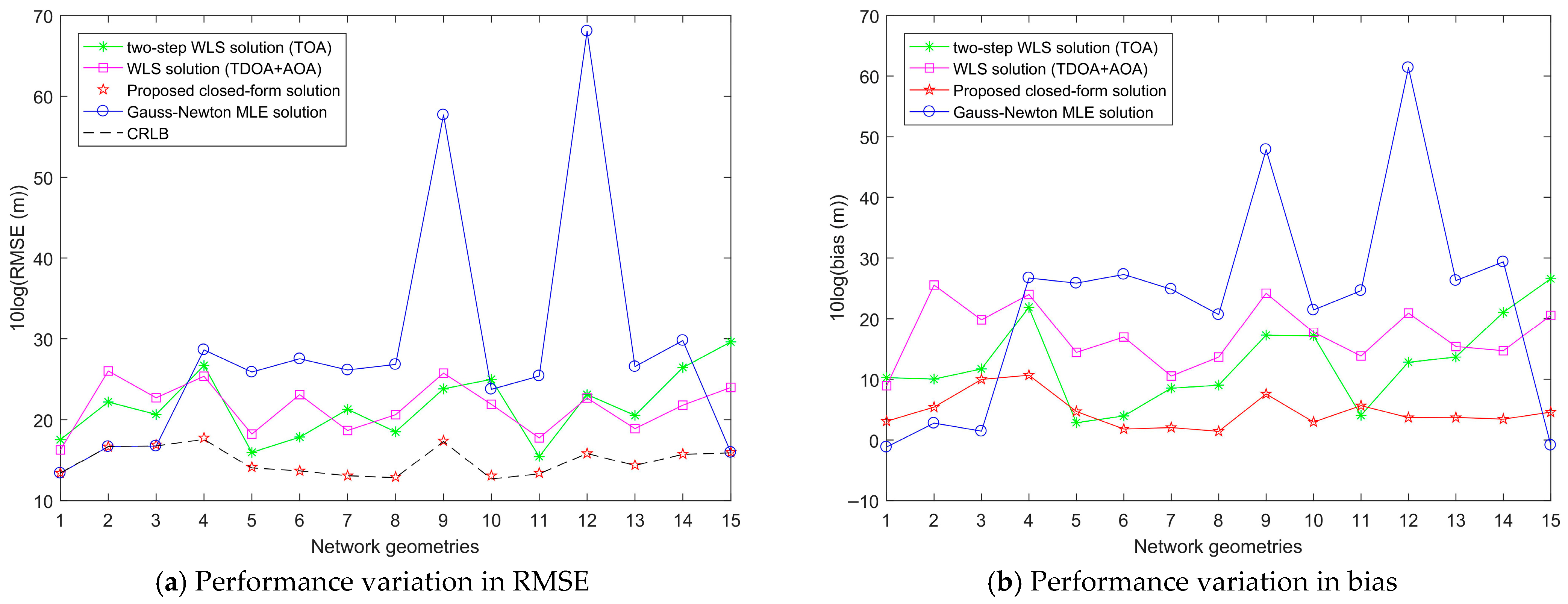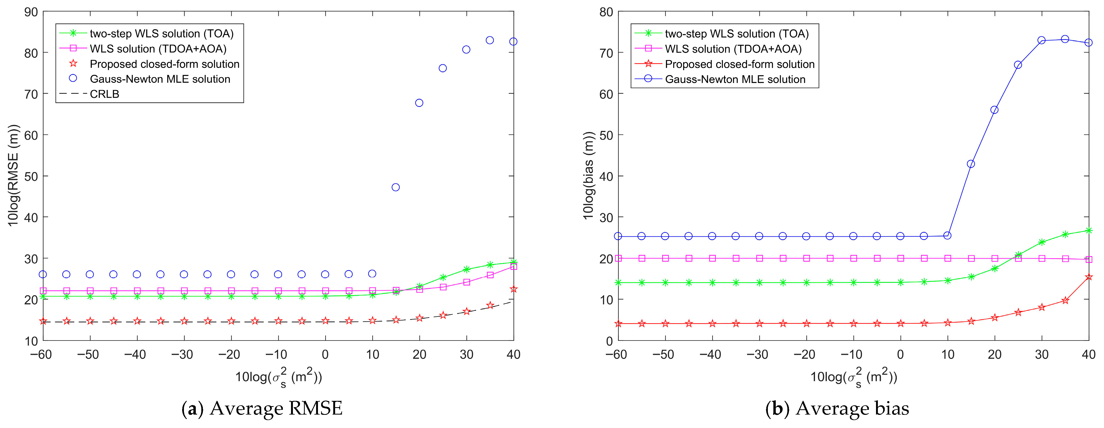 - Chen, S.; Ho, K.C. Achieving asymptotic efficient performance for squared range and squared range difference localizations. IEEE Trans. Signal Process. 2013, 61, 2836–2849. [Google Scholar] [CrossRef]