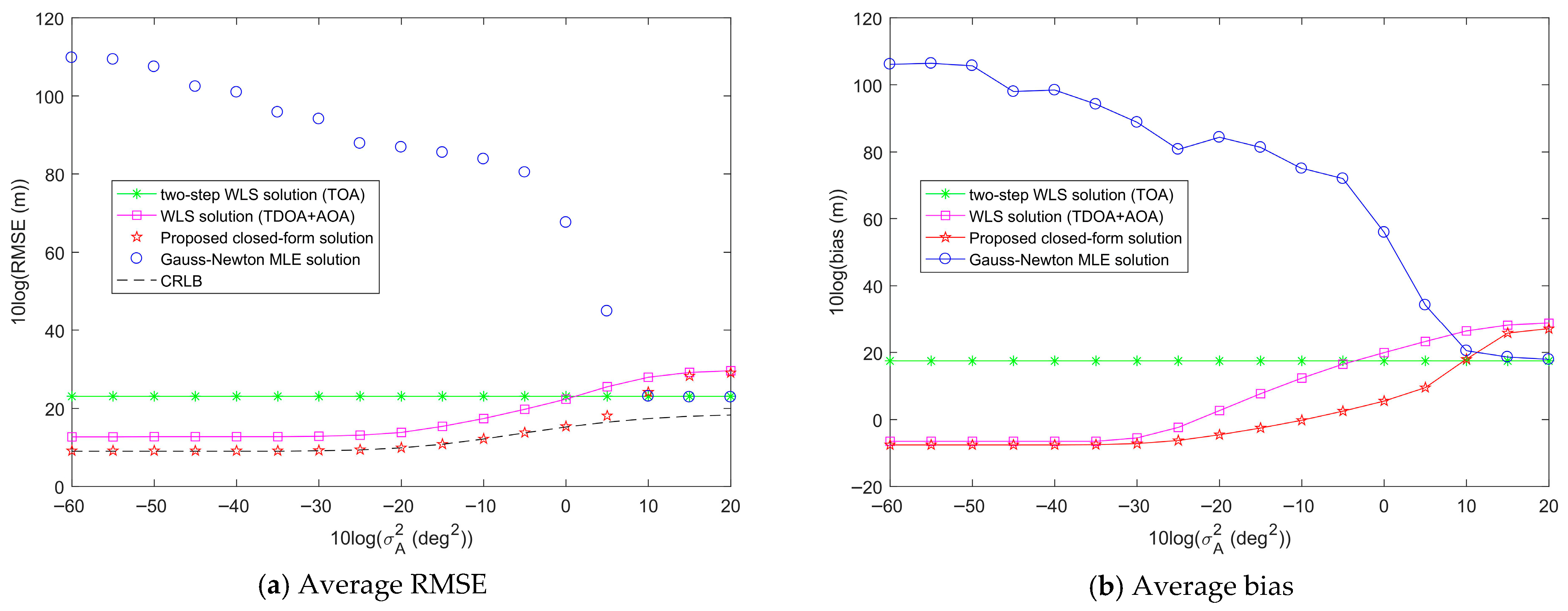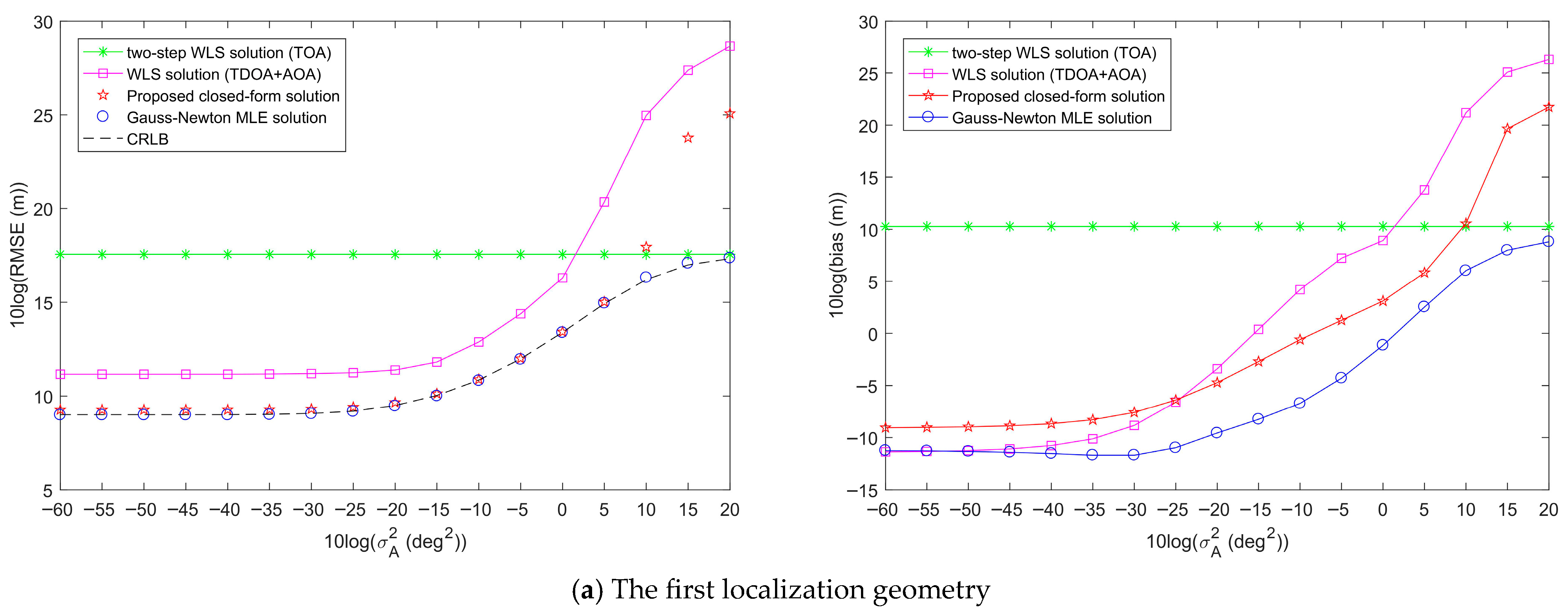 - Yin, J.; Wan, Q.; Yang, S.; Ho, K.C. A simple and accurate TDOA-AOA localization method using two stations. IEEE Signal Process. Lett. 2016, 23, 144–148. [Google Scholar] [CrossRef]