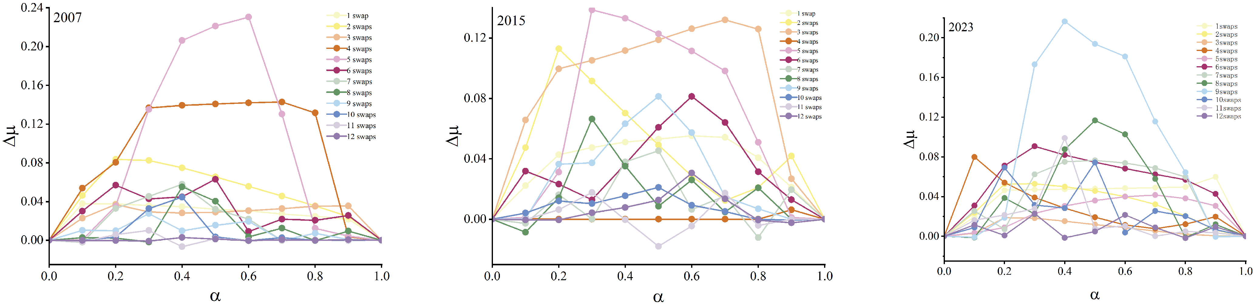 - STEP 3: Sequentially swap the second-order degree of each node pair and calculate the values of and after the t-th swap.