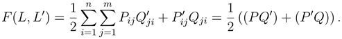 When one individual using L = (P,Q) communicates with another individual using L′ = (P′, Q′), we define the payoff as the number of objects communicable between the individuals, weighted by their probability of correct communication. Thus the payoff for L versus L′ is given by
