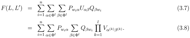 In strict analogy with previous models, the U-matrix is built upon the similarity between the phonemes of which the words are comprised. In particular, we start with a stochastic m-by-m phoneme error-matrix V. The entry Vij denote the probability that, when a speaker attempts to vocalize the ith phoneme, the listener hears the jth phoneme. The similarity between words α and β is defined by the product of the similarity of their phonemes. In other words, we have the following expression for the word error-matrix: