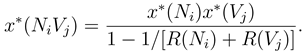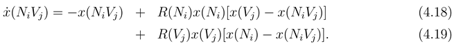 For calculating the fitness of syntactic communication, note that two randomly chosen individuals can communicate about event Eij if they both know noun Ni and verb Vj. Denote by x(NiVj) the relative abundance of individuals who know Ni and Vj. From eq (4.12) we obtain the dynamics