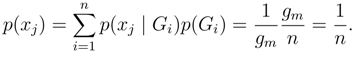 Here, it would be worth mentioning the following fact. I.e. the entropy function is uniquely determined as Shannon’s form due not to the definition of the mean value of the information but to the additivity of the uncertainty of the information that the source has. To see this clearly, let us take the following explanation. Let the elements S = {x1,… xn} partition into k nonempty disjoint groups G1,…,Gk, each of which has the size |Gi| = Gi and ∑i gi = n. We first chose a group Gi with probability p(Gi) = gi/n, then we pick an alphabet with equal probability from the group Gi. Since the conditional probability that a certain alphabet xj is in Gm is given as