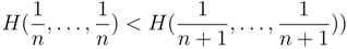 When gi = l for all i = 1, …,k therefore lk = n, no matter what the value q takes, r.h.s of the above relation reduces to H(l/n,…,l/n) + H(1/l,…,1/l). The proof of the uniqueness of the logarithmic form for H after this stage (with two more important properties:H is a continuous function of its argument {pi}(pi ∈ [0, 1]) for all i and we have greater uncertainty when there are more outcomes,
