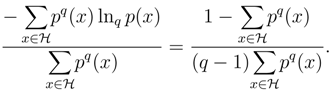 We note that this form takes as the Tsallis one divided by a factor ∑i . We shall hereafter denote the entropy function by indexing q as Hq(X).