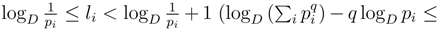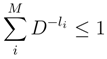 Let us denote codeword lengths of each letters as l1,l2,· · ·. We recall that any code which is uniquely decoded and satisfies prefix conditions over the alphabet size D must be content with the Kraft inequality[22]