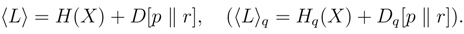 When we use an incorrect or a non-optimal information, we have more complexity in its description. In other words, the use of a wrong distribution, say r, involved in each source letter incurs a penalty (or an increment of the expected description length) of the relative entropy D[p ‖ r] (Dq[p ‖ r]) in the average codeword length,