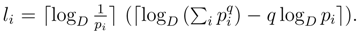 We can show that the average codeword length resides within 1 nat against H(p) + D[p ‖ r] (Hq(p) + Dq[p ‖ r]) due to the present definition of the li, that is,