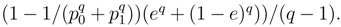 . The Iq(X; Y ) can be taken its maximum when p0 = p1 = 1/2 for some ranges of q and e. Then the capacity is found to be