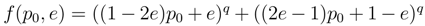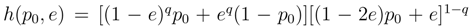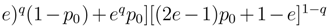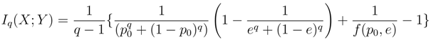 respectively, the summation Σi pq(yi) is calculated with p1 = 1 − p0 as ((1 − 2e)p0 + e)q + ((2e − 1)p0 + 1 − e)q. Therefore from Eq(16) the mutual information is expressed as