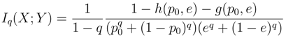 where represents the escort average with respect to p(x). Let us next define the mutual information Iq(Y; X). Here, we shall follow the usual definition of the reduction in uncertainty due to another variable (the entropy subtracted by the conditional entropy). That is,