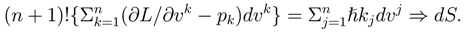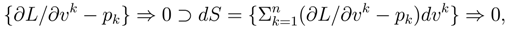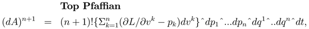 Conclusion 7 As the 2n+2 form represents a volume element, the coefficient of the top Pfaffian has a representation (to within a factor) as a perfect differential of a function, S, which is independent from the {pk, qk, t}. The differential change of the function S is explicitly dependent upon the differentials of velocity dvk and the non-canonical components of momentum (∂L/∂vk − pk).