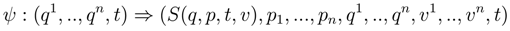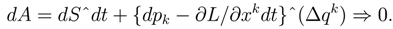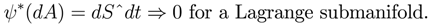 Observe that the immersion ψ of the configuration space with differentials {dq1ˆ..dqnˆdt} into the top Pfaffian space {dSˆdp1ˆ...dpnˆdq1ˆ..dqnˆdt}, defines a Lagrangian submanifold when the pullback of the 2-form dA vanishes. The 2-form dA has expression given by the equation above. Consider the case where the immersion into the 3n+1 space is such that the pullback of (∆qk ) ⇒ 0.