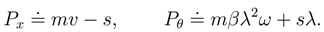 H = (mv2/2 + βm(λω)2/2) ⇒ (1/2m)[(Px + s)2 + (1/β)(Pθ/λ − s)2]