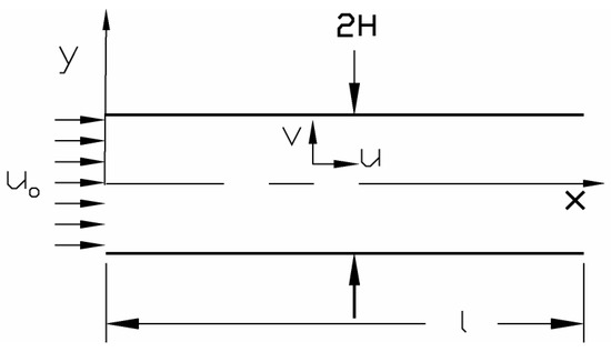 Consider the laminar incompressible forced convection slip flow in microchannel. The channel is made up of two parallel plates of infinite depth, width is 2H and length is l, as shown in Figure (1). Assuming the fluid has constant physical properties and that the temperature of the walls of the channel is constant. Also, the fluid enters the channel with uniform velocity uo and temperature T∞. In addition, both the hydrodynamics and thermal boundary layers are assumed to start developing at the leading edge of the microchannel. The governing equations of this flow are the macro Navier-Stokes and energy equations under velocity slip and temperature jump conditions at the wall(s). Following Kwon and Pletcher approach [14], these equations are written in dimensional form as: