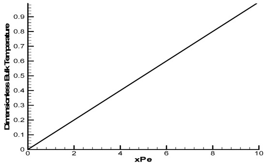 Dimensionless bulk temperature for Pe=10 (numerical results).