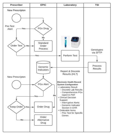 - Ramsey, L.B.; Prows, C.A.; Zhang, K.; Saldana, S.N.; Sorter, M.T.; Pestian, J.P.; Wenstrup, R.J.; Vinks, A.A.; Glauser, T.A. Implementation of pharmacogenetics at Cincinnati Children’s hospital medical center: Lessons learned over 14 years of personalizing medicine. Clin. Pharmacol. Ther. 2019, 105, 49–52. [Google Scholar] [CrossRef]