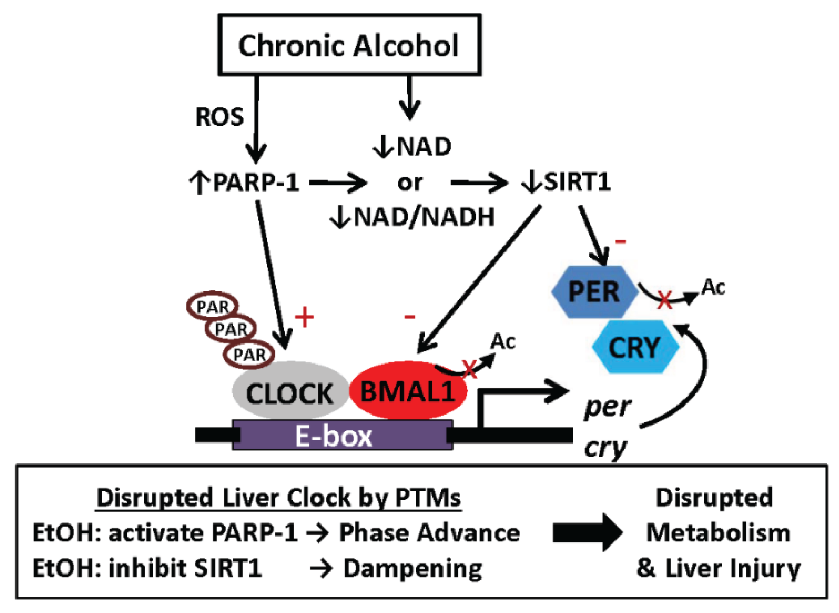 6.2. One Proposed Model for How Alcohol Disrupts Function of the Liver Clock: Focus on Protein Post-Translational Modifications