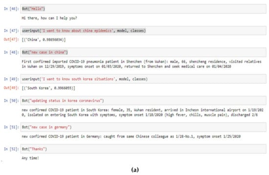 Informational decision from the chatbot application: (a) contextual-based chatbot (supervised learning); (b) contextual-based chatbot (unsupervised learning).