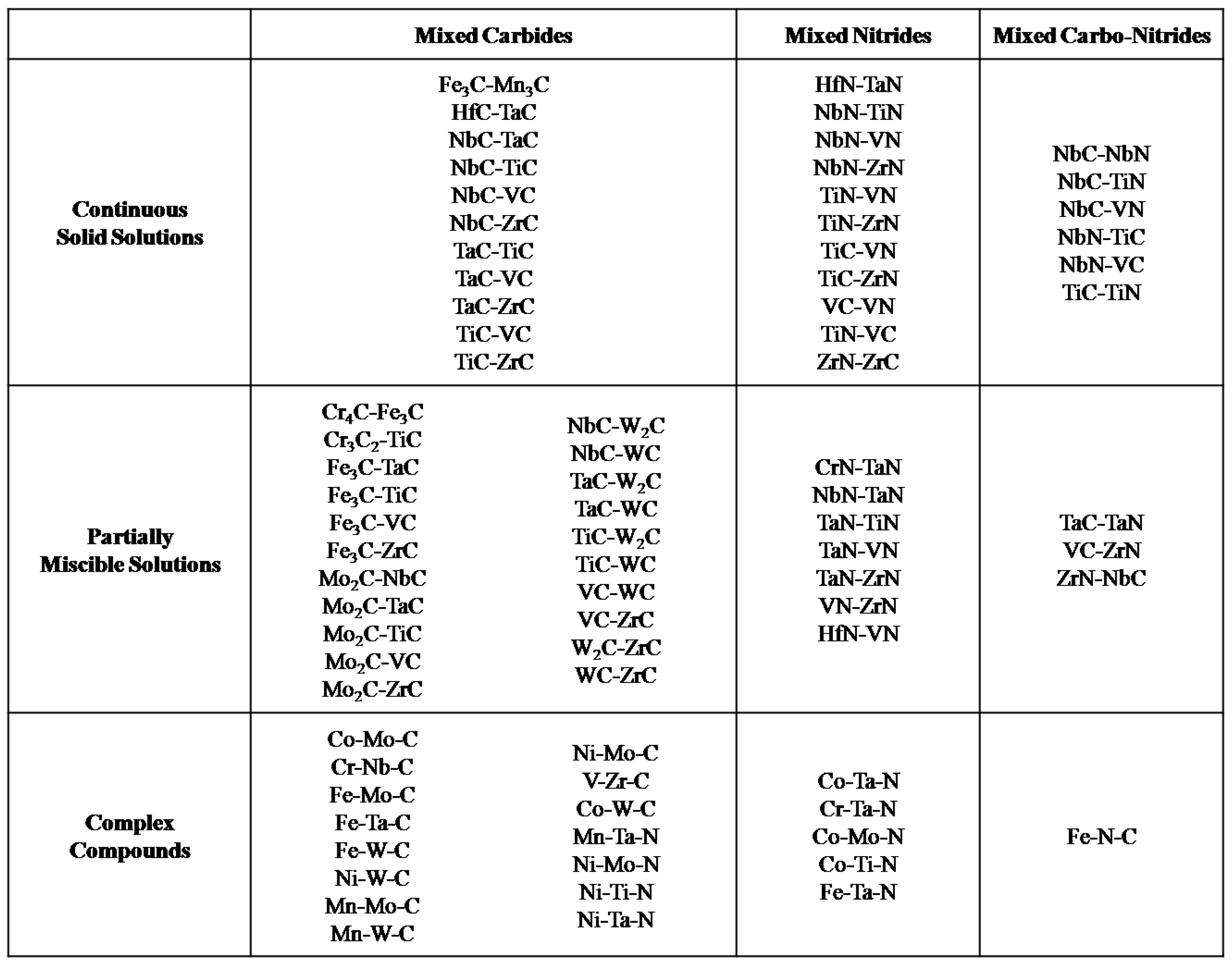 Mixed Alloy Formation in Carbides and Nitrides.