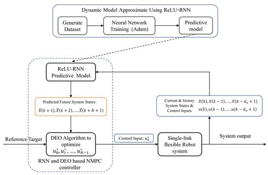The architecture of RNN and DEO based NMPC controller.