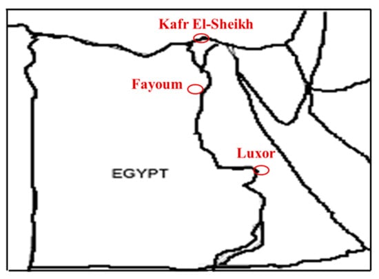 This study was carried out in three geographical zones: the Upper, Middle and Delta Egypt regions, as shown in Figure 1.