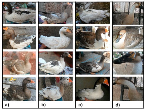 Collected photos of the native Egyptian—(a) Kafr El-Sheikh, (b) Fayoum and (c) Luxor—and (d) Chinese geese populations.