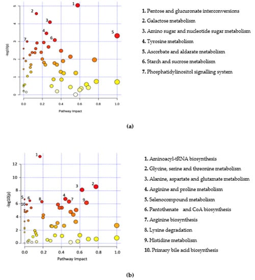 - Xia, J.; Wishart, D.S. MetPA: A WeB−Based Metabolomics Tool for Pathway Analysis and Visualization. Bioinformatics 2010, 26, 2342–2344. [Google Scholar] [CrossRef] [Green Version]