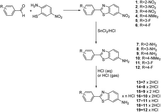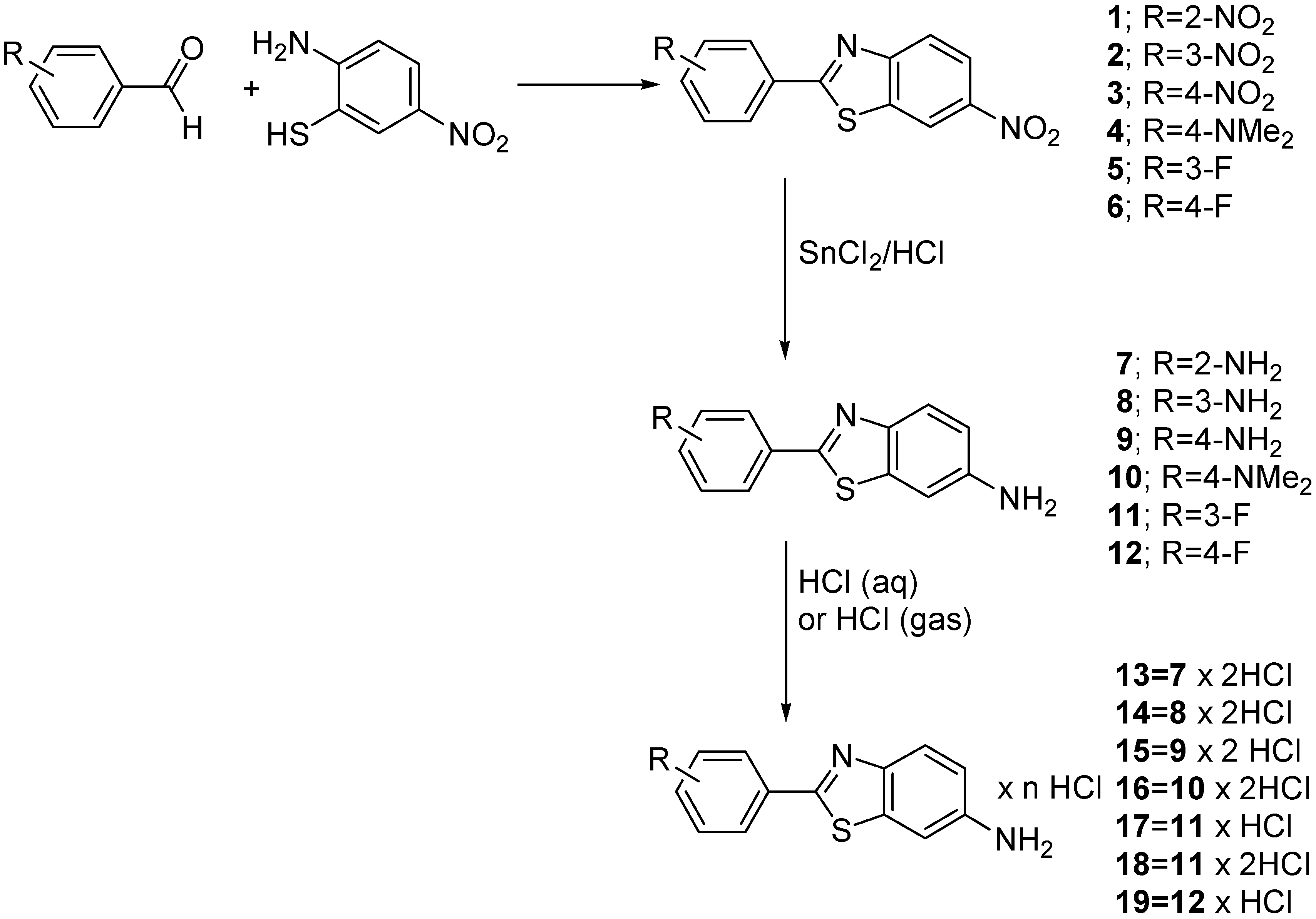 Synthesis of 6-amino-2-(substituted-phenyl) benzothiazoles 7-12