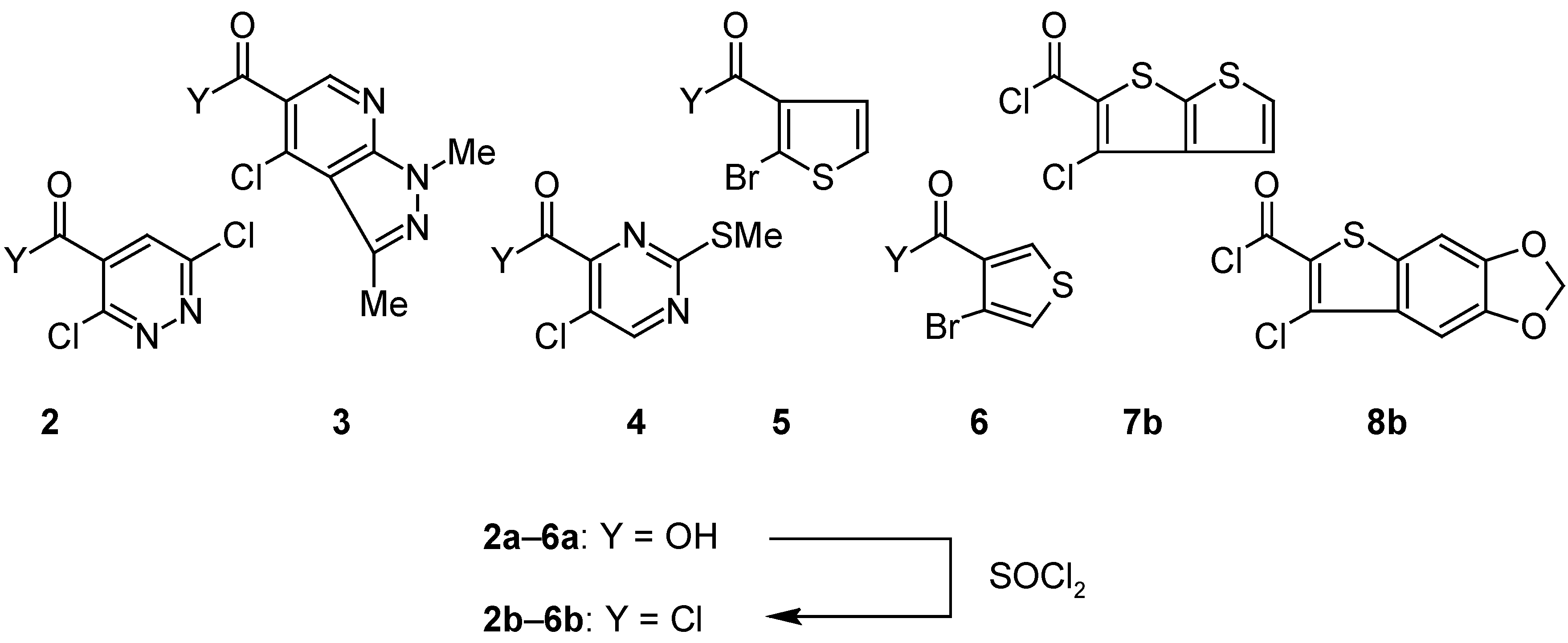 Structure of o-haloarenecarbonyl chlorides 2b–8b.