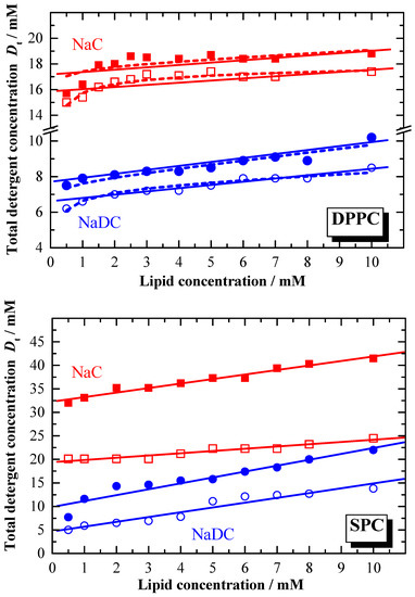 - Hildebrand, A.; Beyer, K.; Neubert, R.; Garidel, P.; Blume, A. Solubilization of negatively charged DPPC/DPPG liposomes by bile salts. J. Colloid Interf. Sci. 2004, 279, 559–571. [Google Scholar] [CrossRef]