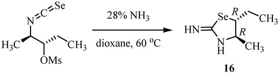 - Koketsu, M.; Kiyokuni, T.; Sakai, T.; Ando, H.; Ishihara, H. Carbonate extension. Synthesis of 1,3-selenazines and 1,3-selenazolidines via intramolecular addition of N-allylselenoureas. Chem. Lett. 2006, 35, 626–627. [Google Scholar] [CrossRef]