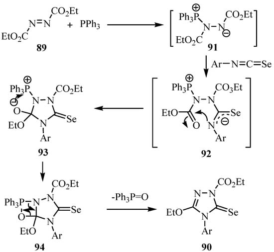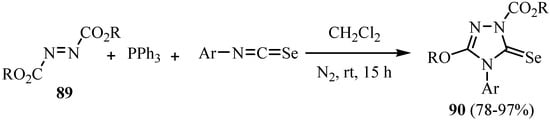 - Favero, F.; Sommen, G. L.; Linden, A.; Heimgartner, H. Synthesis of 5-selenoxo-1,2,4-triazole-1-carboxylates from isoselenocyanates and azodicarboxylates. Heterocycles 2006, 67, 749–762. [Google Scholar] [CrossRef]