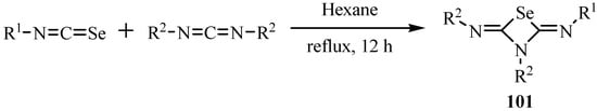 - Sommen, G. L.; Linden, A.; Heimgartner, H. Selenium-containing heterocycles from isoselenocyanates: Cycloaddition of carbodiimides to selenazetidines. Helv. Chim. Acta 2005, 88, 766–773. [Google Scholar] [CrossRef]