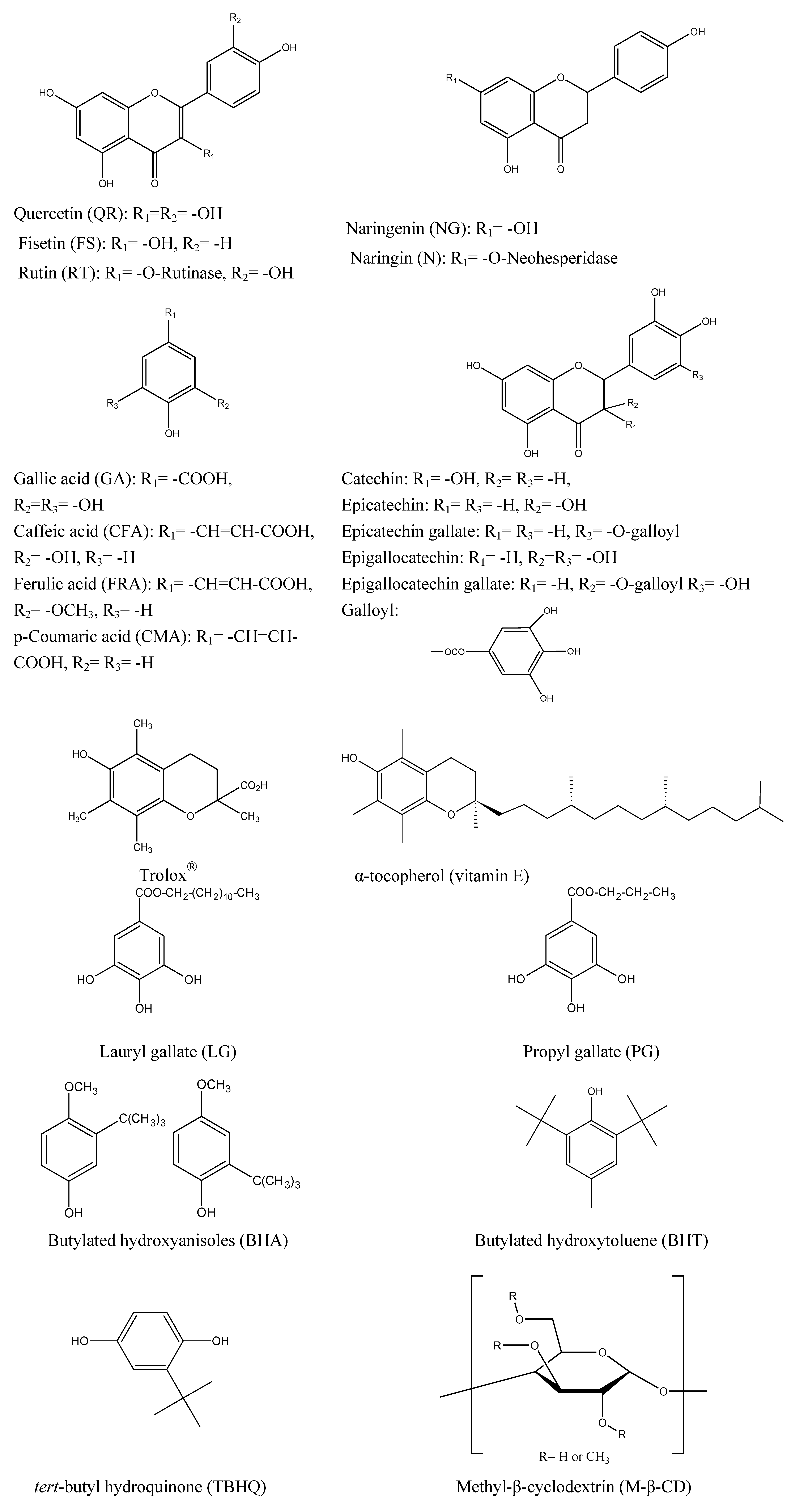 - Porter, W.L.; Black, E.; Drolet, A.M. Use of Polyamide Oxidative Fluorescence Test on Lipid Emulsions: Contrast in Relative Effectiveness of Antioxidants in Bulk Versus Dispersed Systems. J. Agric. Food Chem. 1989, 37, 615–624. [Google Scholar] [CrossRef]